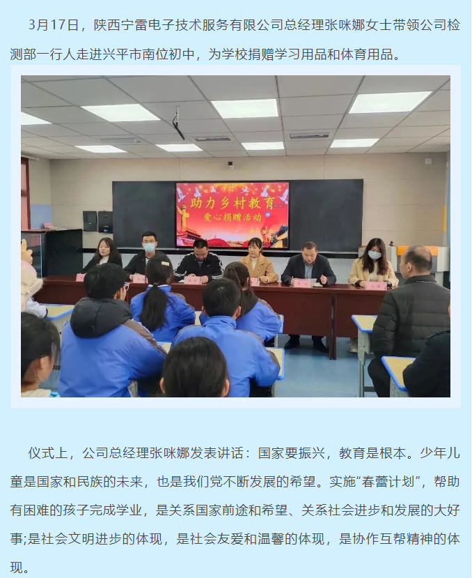 陜西寧雷檢測(cè)舉辦“關(guān)愛學(xué)生成長(zhǎng),助力鄉(xiāng)村教育”公益活動(dòng)