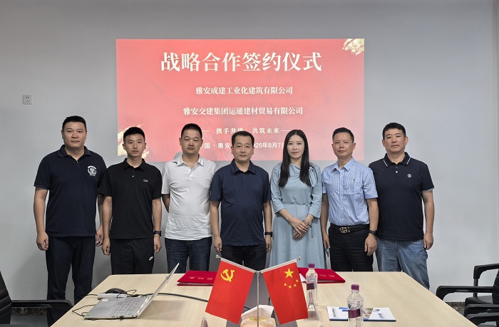 近日,雅安成建工業(yè)化建筑有限公司(以下簡稱成建工業(yè)化公司)與雅安交建集團運通建材貿(mào)易有限公司(以下簡稱交建運通建材公司)在雅安市經(jīng)開區(qū)正式簽署戰(zhàn)略合作協(xié)議。雙方將秉持“優(yōu)勢互補、資源共享、互利共贏、長期發(fā)展”的原則,在建筑材料銷售、非金屬礦物制品制造等領(lǐng)域深化合作,共同推動區(qū)域建材產(chǎn)業(yè)高質(zhì)量發(fā)展。